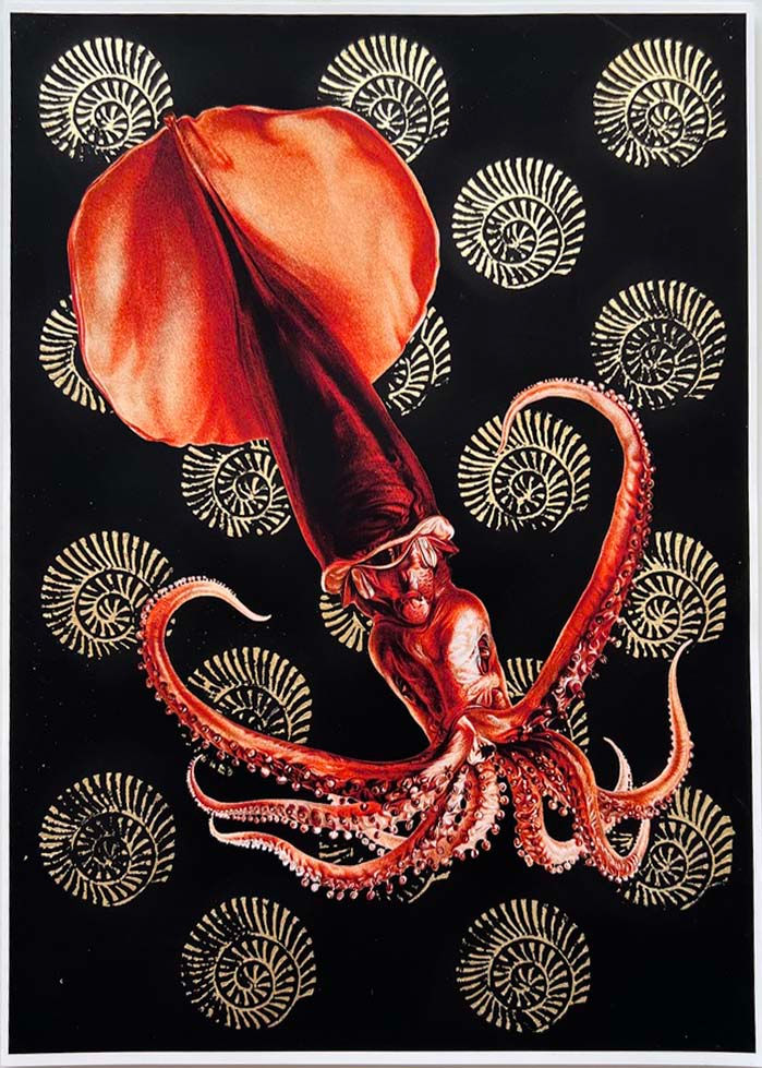 Squid - A4 print with gold leaf motifs